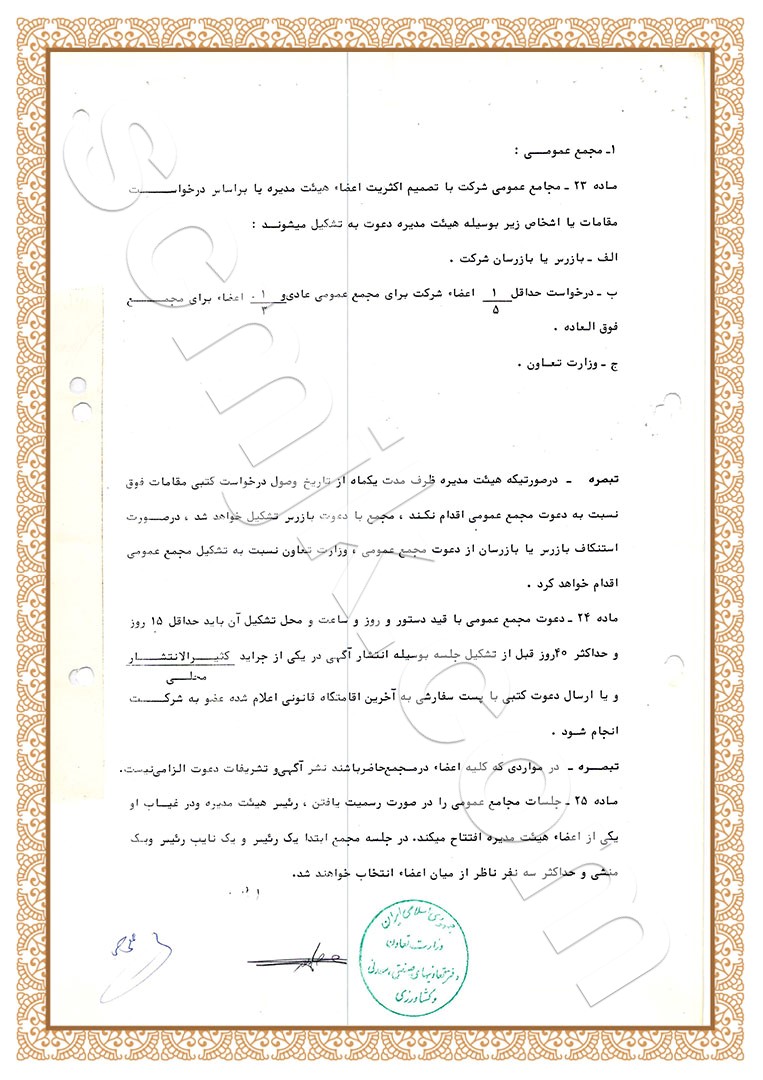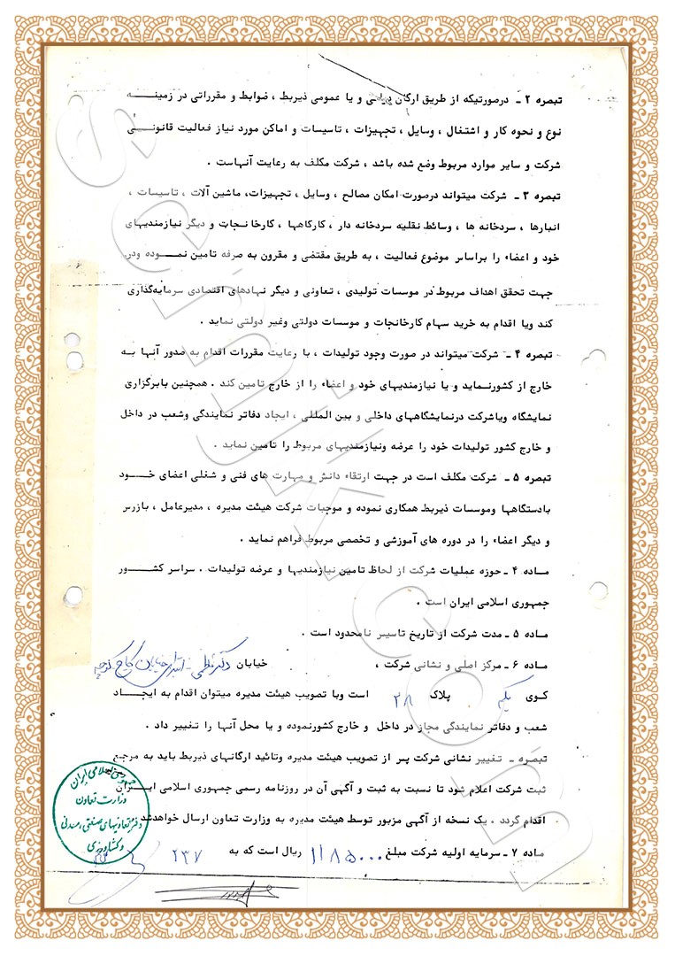 تأسیس شرکت و اساسنامه رسمی شرکت