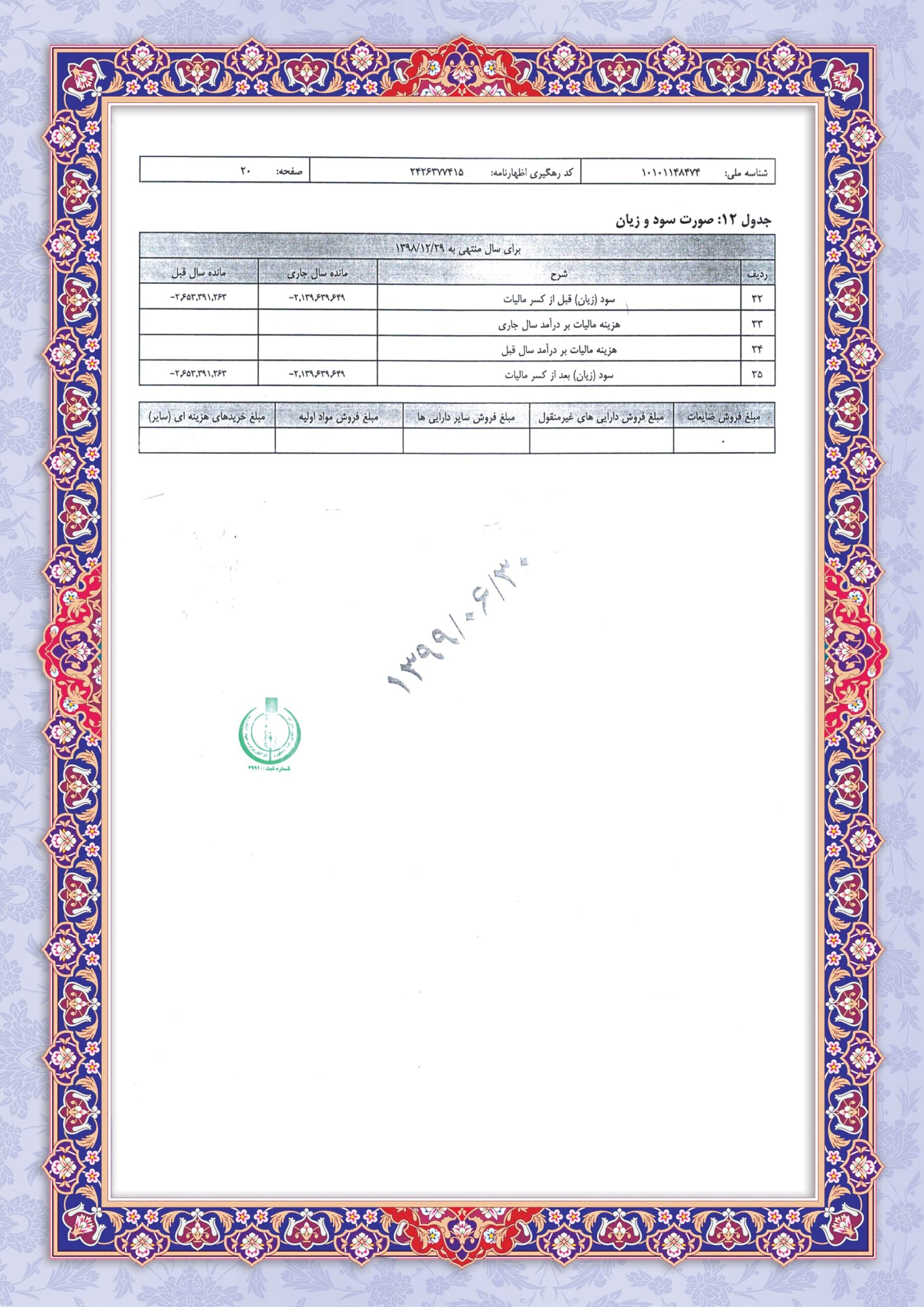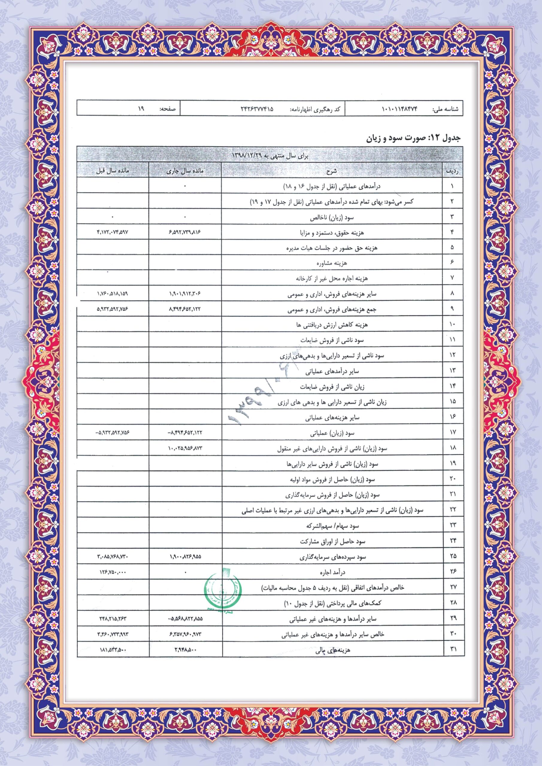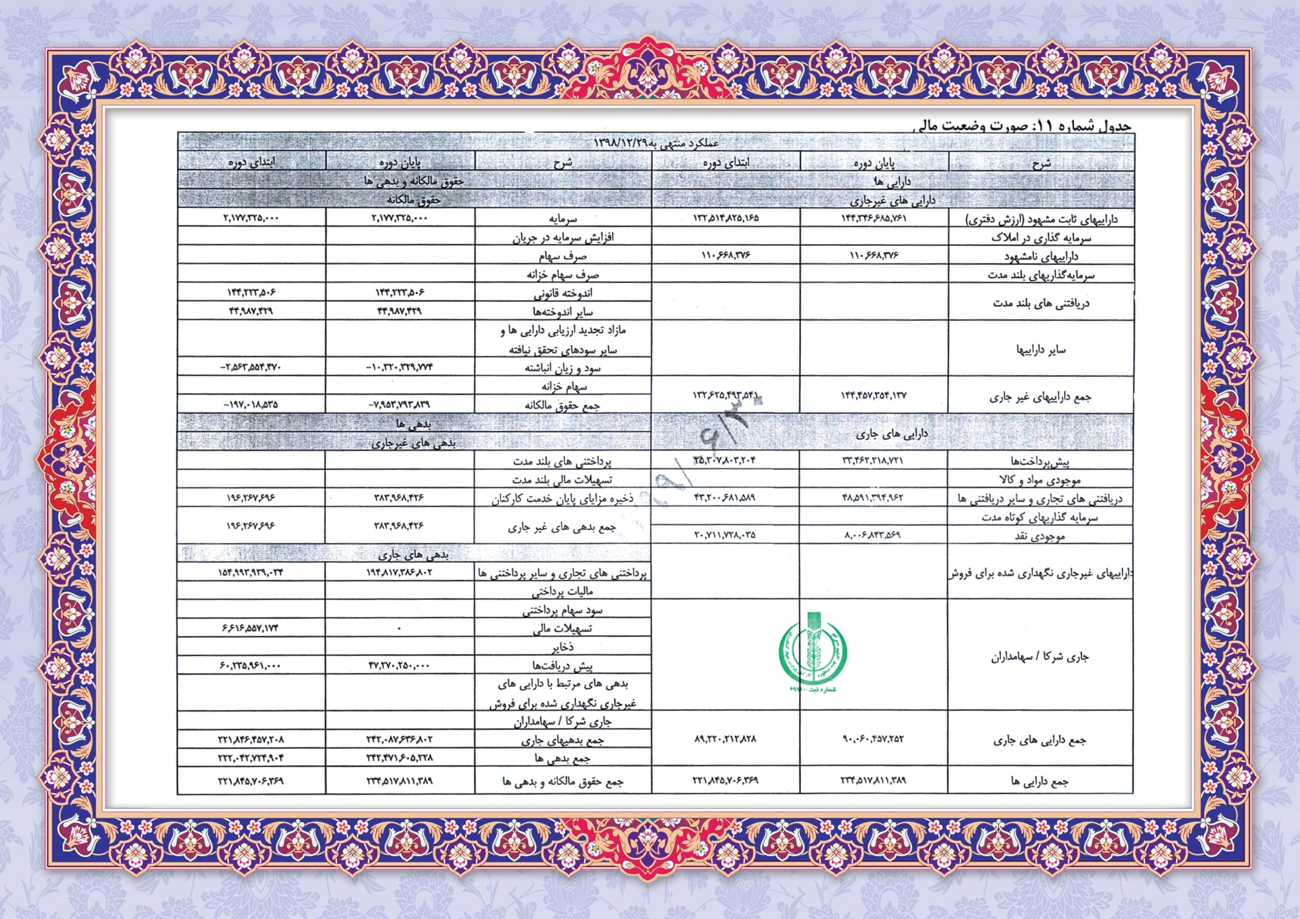 ترازنامه سال 1398 بصورت کامل